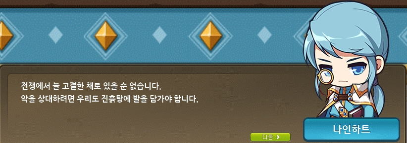 스토리 진행상 제 캐릭터가 나인하트를 찾나봅니다. 왜 찾는건지....