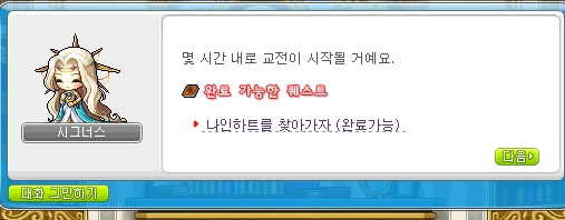 나인하트를 찾으러 왔는데, 시그너스가 퀘스트를 완료 시켜주네요.