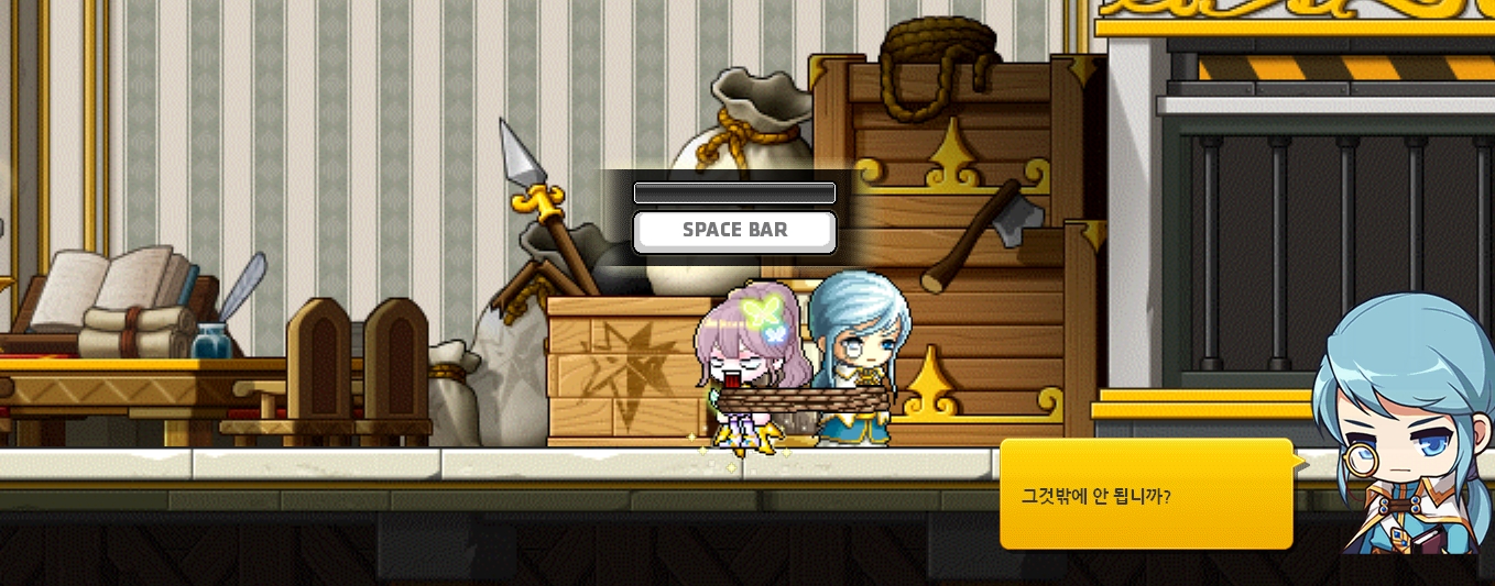 억울함을 뒤로하고 묶여있는 밧줄을 풀기 위해 스페이스 바를 연타합니다.