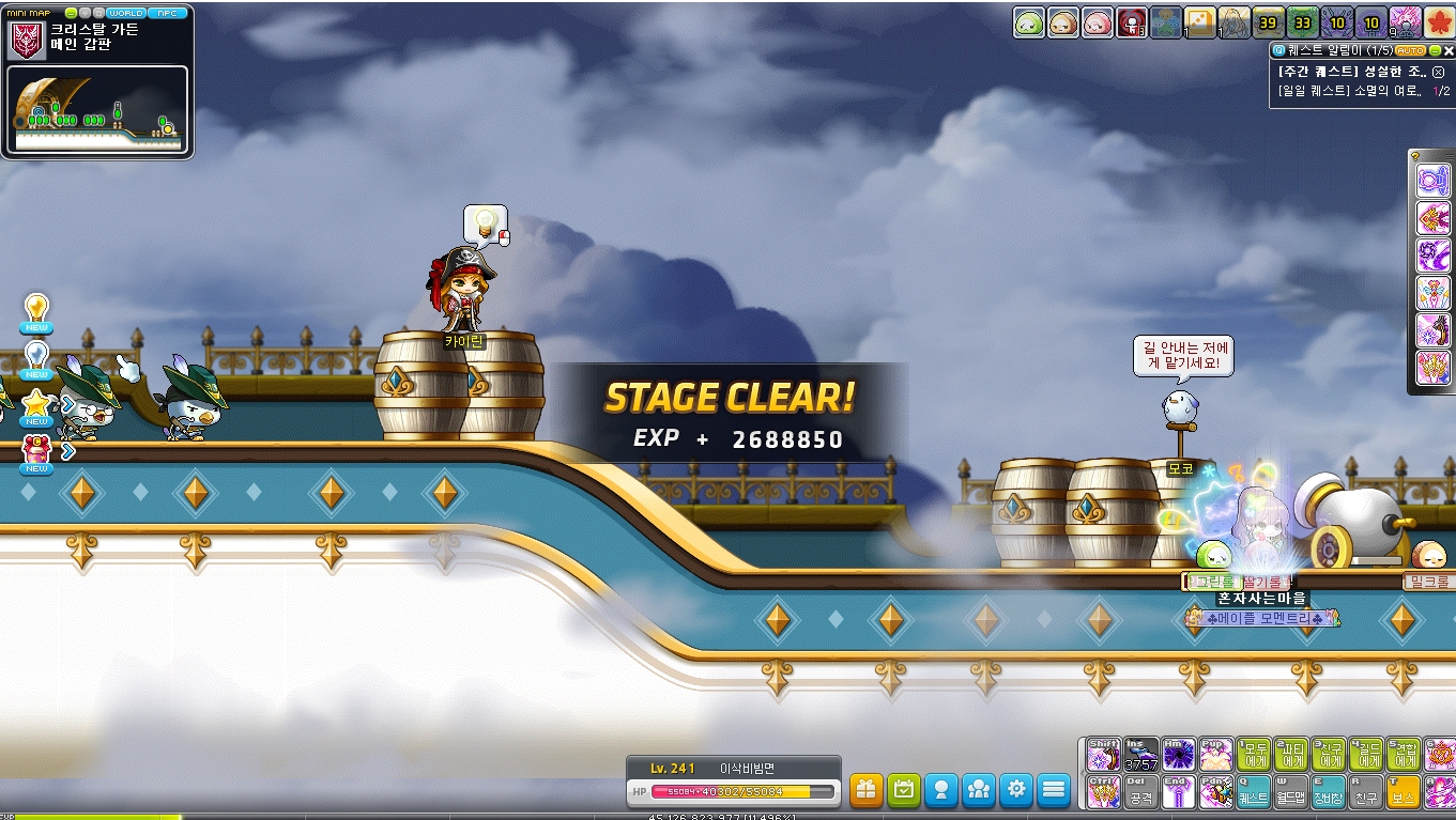 40마리를 처리한 후 클리어 표시가 뜨면 오른쪽 포탈을 이용하여 다음으로 넘어가줍니다.